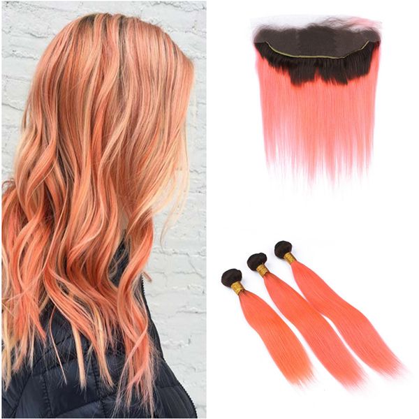 2019 Indian Orange Ombre Hair Weaves With Lace Closure 2 Tone 1b