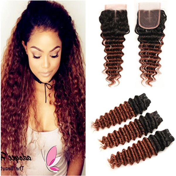 Compre 1b 4 30 Dark Auburn Ombre Malaysian 3bundles Con Cierre