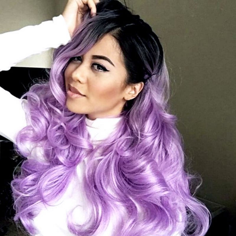 Ombre Purple Bodywave Synthetic Lace Front Wig Glueless Long