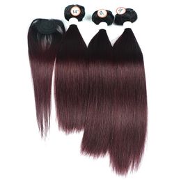 Ombre Bundles With Closure Dark Red Hair 1b 33 Straight Brazilian