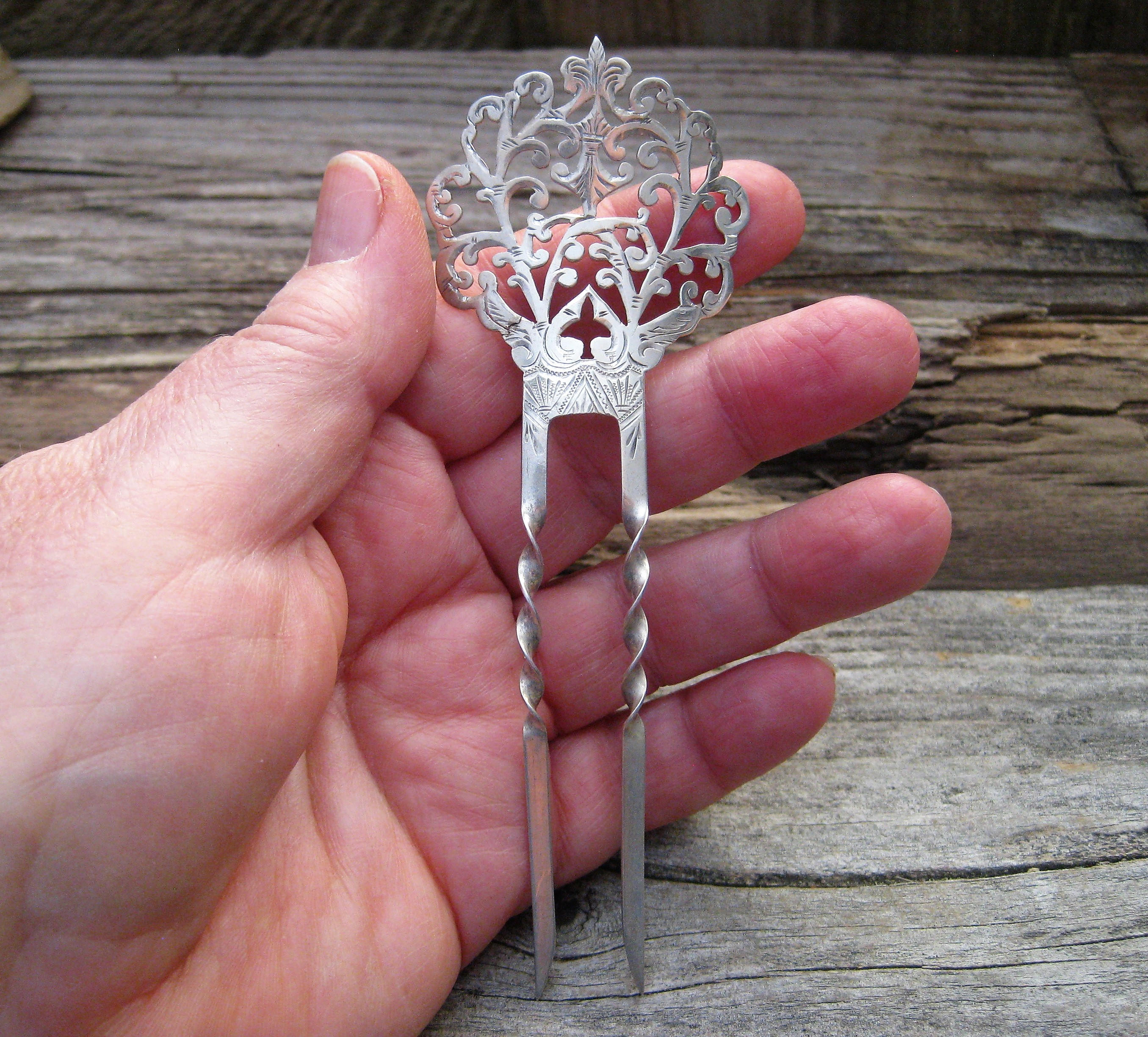 Large Silver Hair Clip Pin Metal Headpiece Nickel Silver Bun