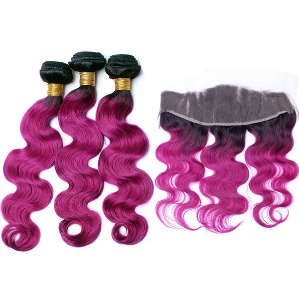 2020 Dark Roots Hot Pink Ombre Virgin Hair With Lace Closure 3