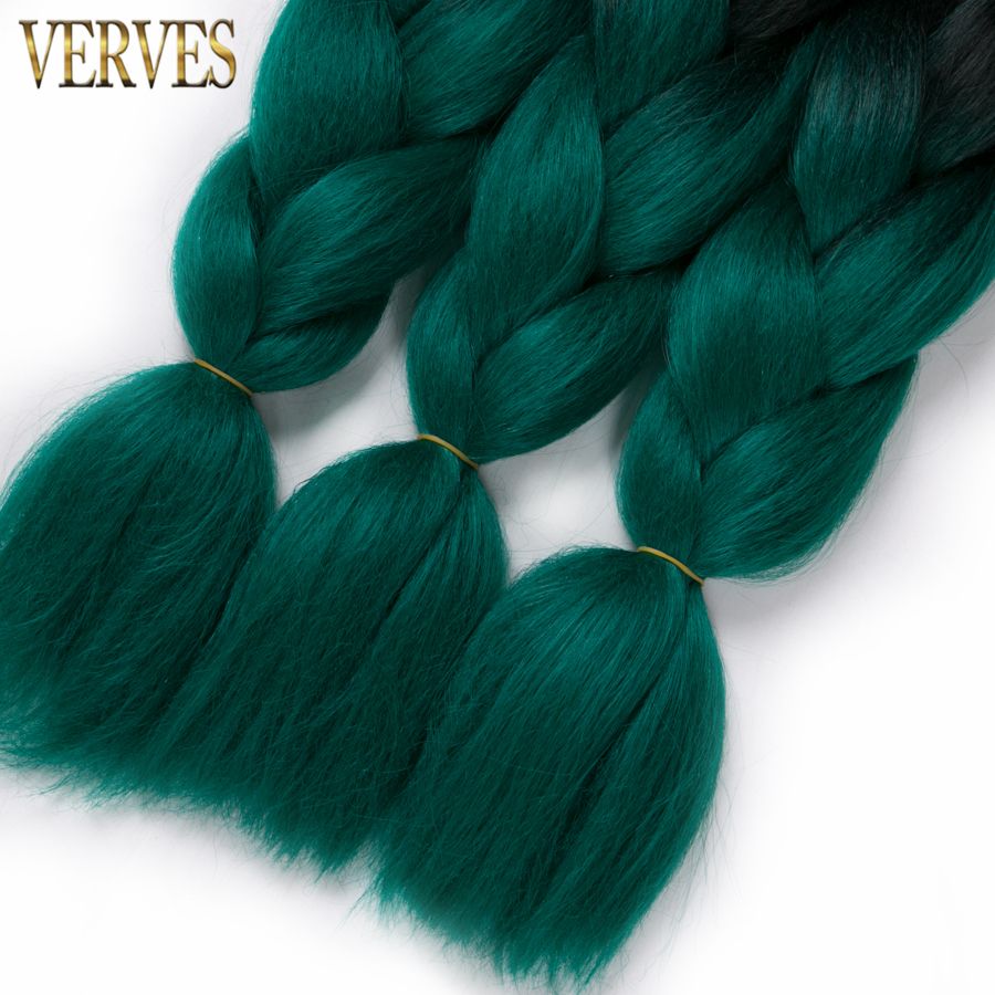 Black Emerald Green Grey Synthetic Braiding Hair Extensions Ombre