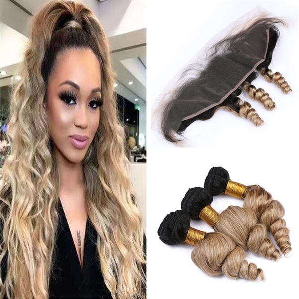 1b 27 Body Wave Hair 3 Bundles With Lace Frontal Ombre Hair Color