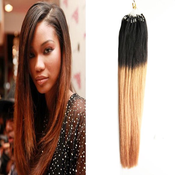 Micro Loop Human Hair Extension Off Black 1b Ombre To Gold Brown