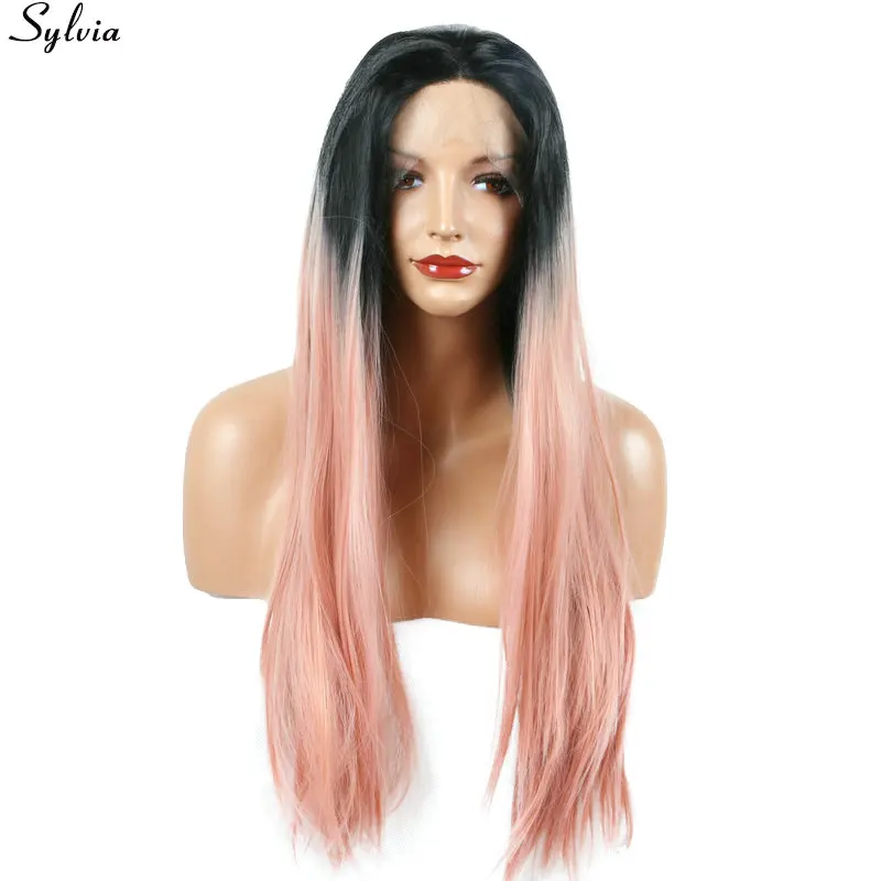 Sylvia 1b Black Root Ombre Pastel Pink Wig Long Silky Straight