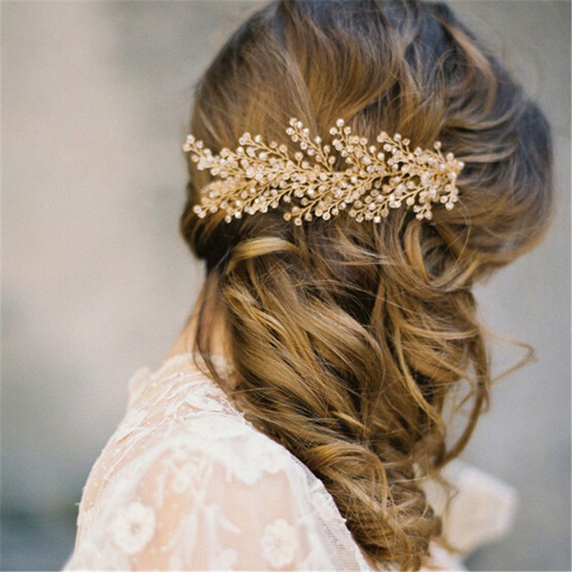 2019 Hot Gold Floral Hair Piece Wedding Comb Pearls Bridal Jewelry