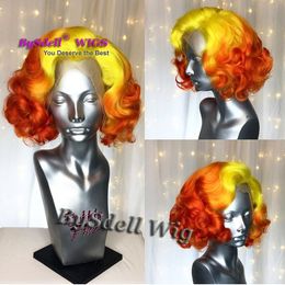 Cheap 10inch Short Orange Yellow Golden Color Wavy Synthetic Lace